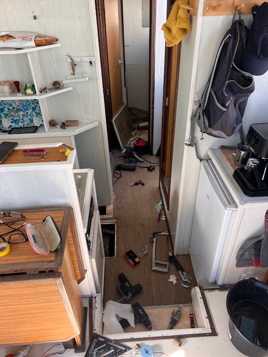 Aching joints. See above. It also doesn’t help that I jumped straight into boat renovations on arrival, squeezing into confined spaces to do plumbing jobs for the holding tank project. From experience this one can only be solved by laying about doing nothing for a couple of day. Fat chance.
